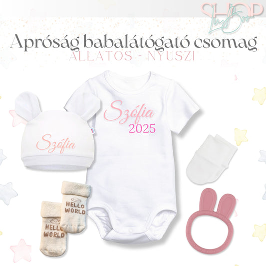 Gondosan összeállított babás szettjeinket személyre szabott részletekkel készítjük, hogy valódi örömöt szerezz – legyen szó babaváróról, születésnapról vagy bármilyen fontos eseményről.