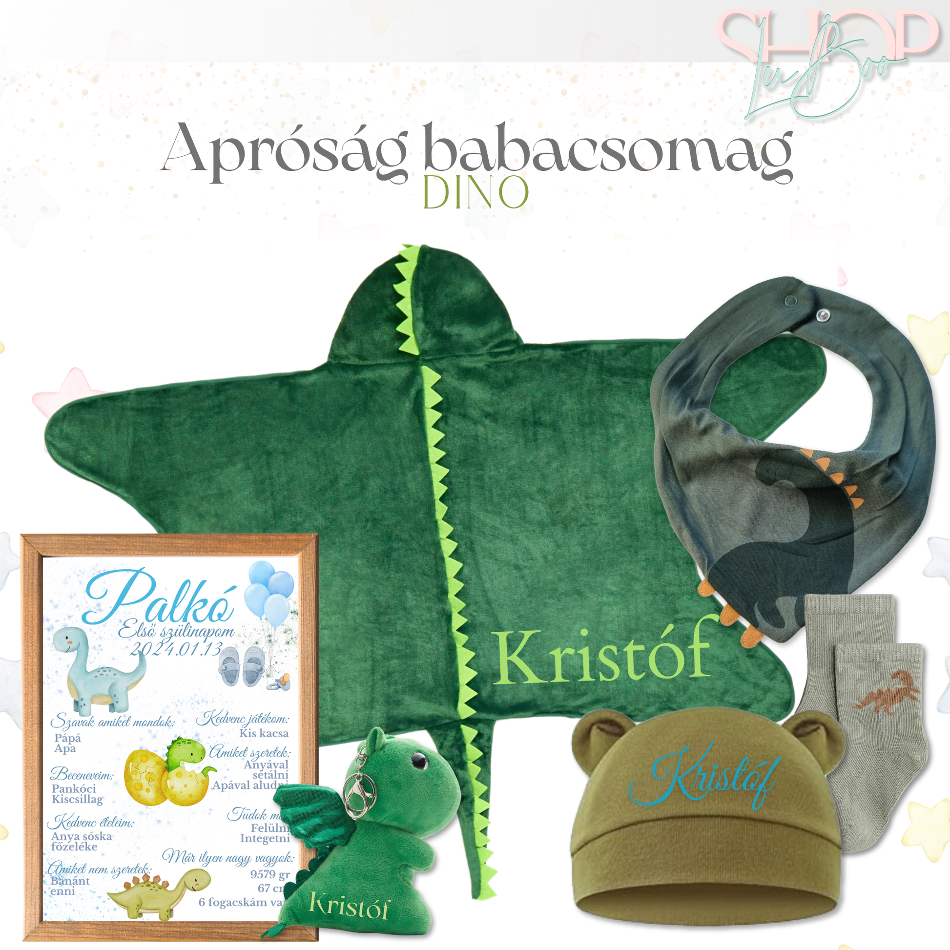 Ne érd be hétköznapi ajándékkal! Ez a vagány dinós szett garantáltan mosolyt csal a kis felfedező és szülei arcára. A csomag egyedi és személyre szabható – a picur nevét én vasalom fel a termékekre, hogy igazán különleges legyen.