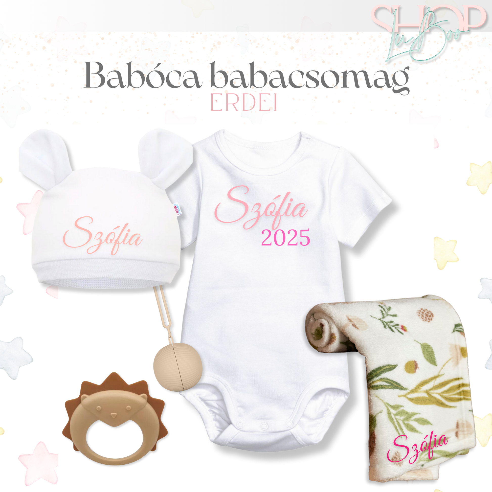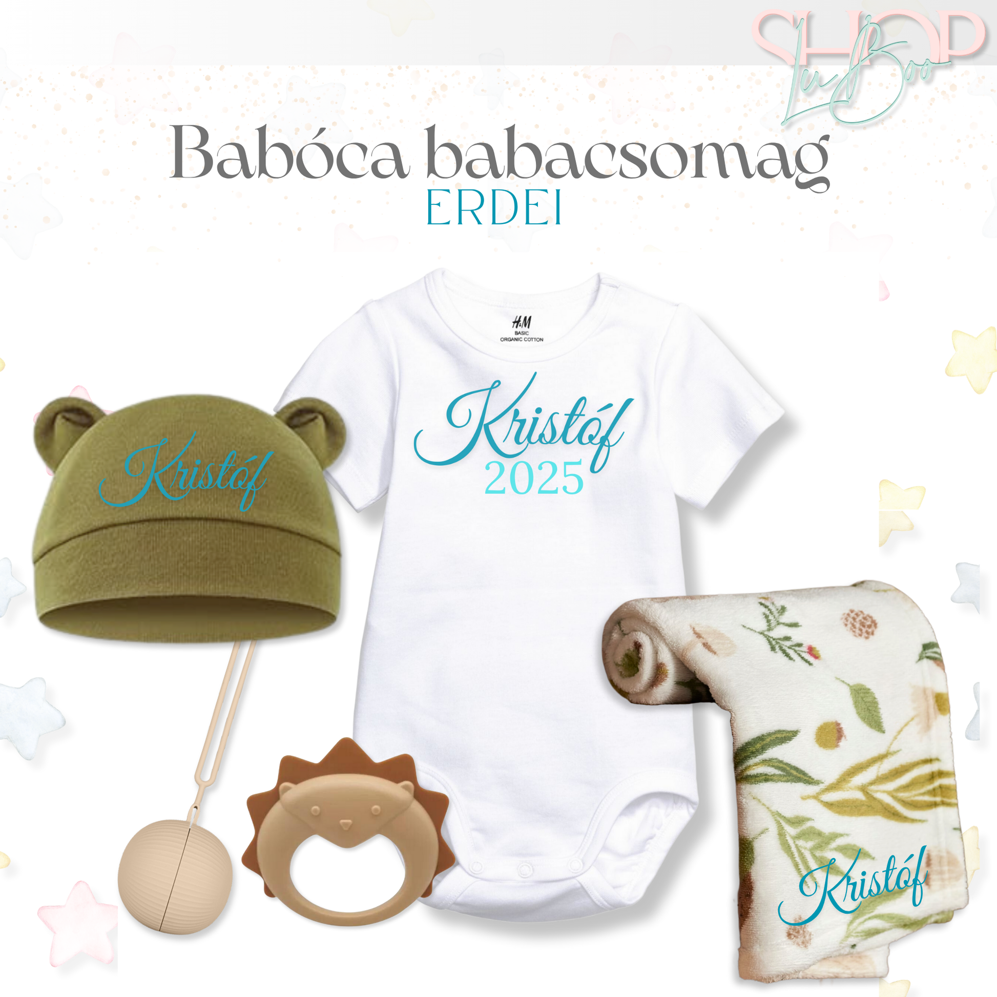 Ez az Erdei Babalátogató Csomag a természet nyugalmát, a melegség és szeretet érzését hozza el egy különleges, névre szóló formában.