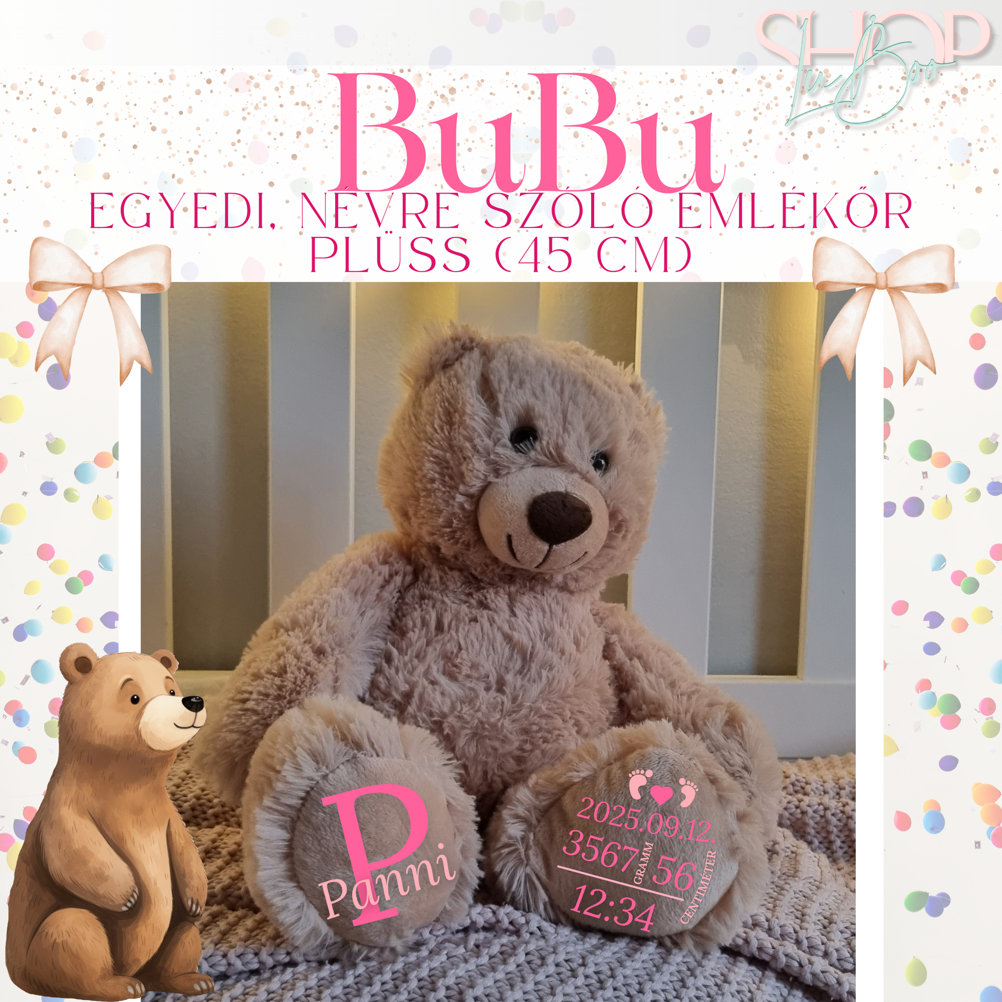 Örömmel mutatjuk be a BIGBuBu-t – egy óriási adag szeretetet plüssmackó formájában. A 80 cm magas, különlegesen puha és bájos mackó nem csupán játék vagy dekoráció: igazi társ és maradandó emlék egy kisbaba életében. Mérete miatt tökéletes ölelnivaló barát, aki ott lehet az első mosolytól kezdve az elalvásig minden meghitt pillanatnál.