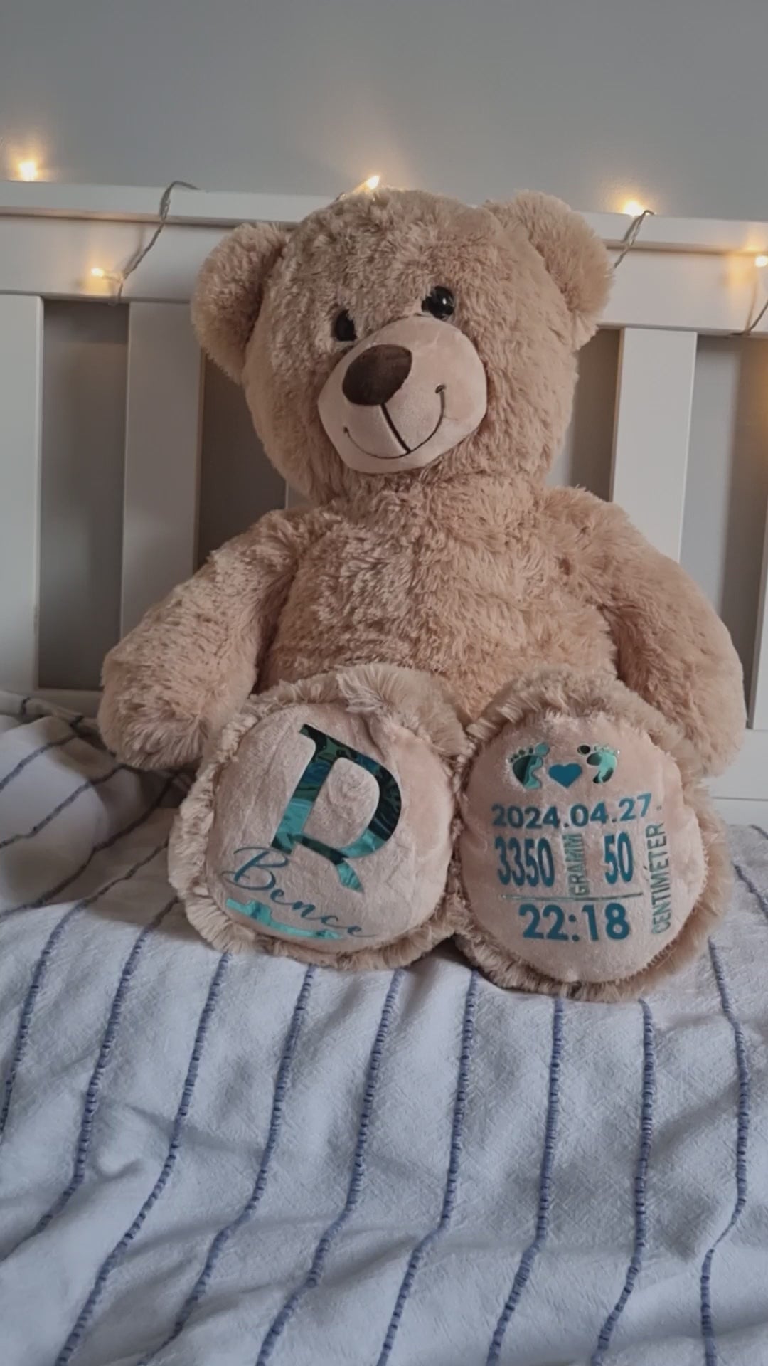 A tappancsára kézzel, nagy odafigyeléssel vasalom fel a baba nevét és születési adatait, így minden BIGBuBu egyedi emlékőrré válik. Akár babaváróra, keresztelőre vagy első látogatásra viszed ajándékba, ez a maci biztosan a család kedvencévé válik – és örök emléket őriz majd egy életre szóló pillanatról.