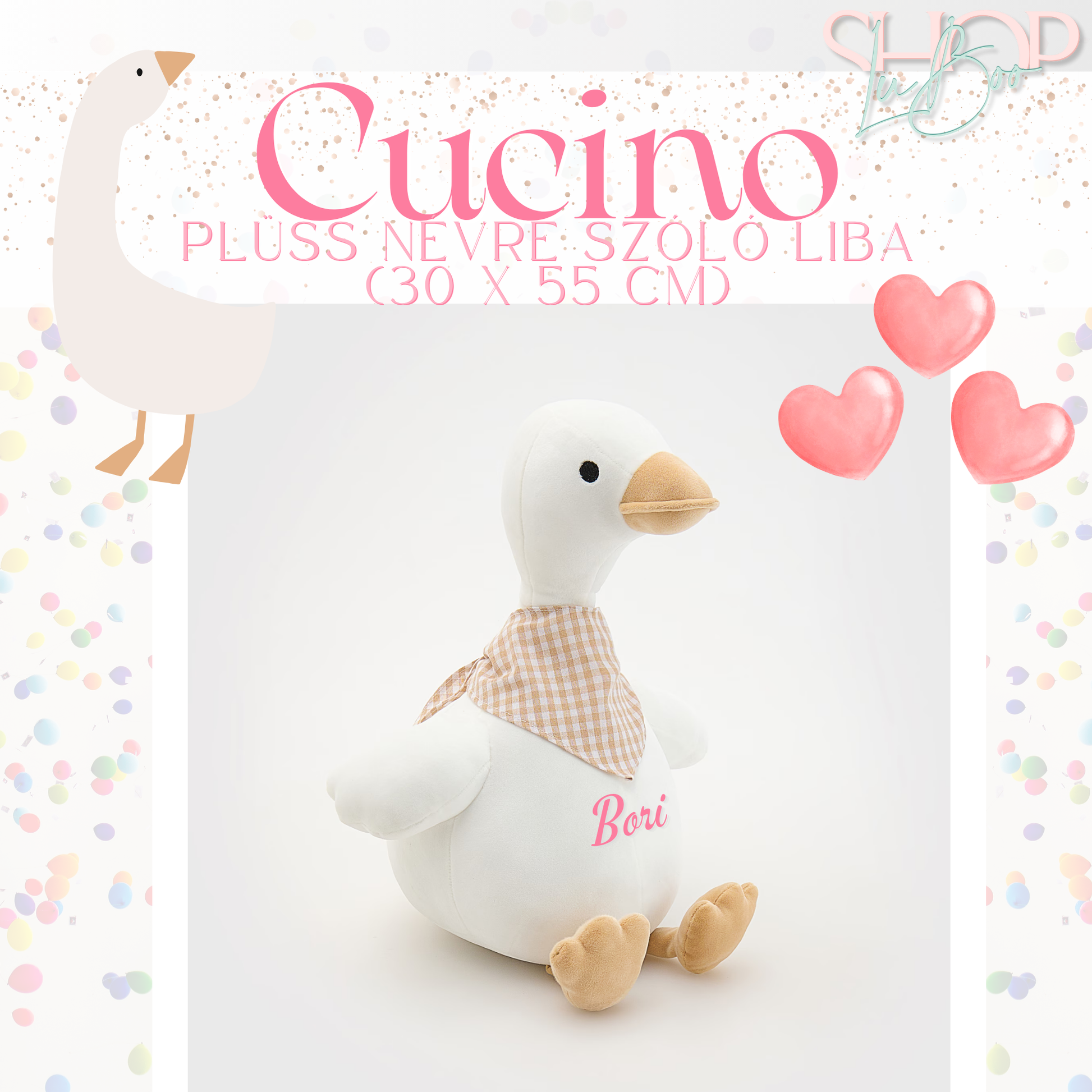 Cucino - Plüss névre szóló liba (30x55 cm)