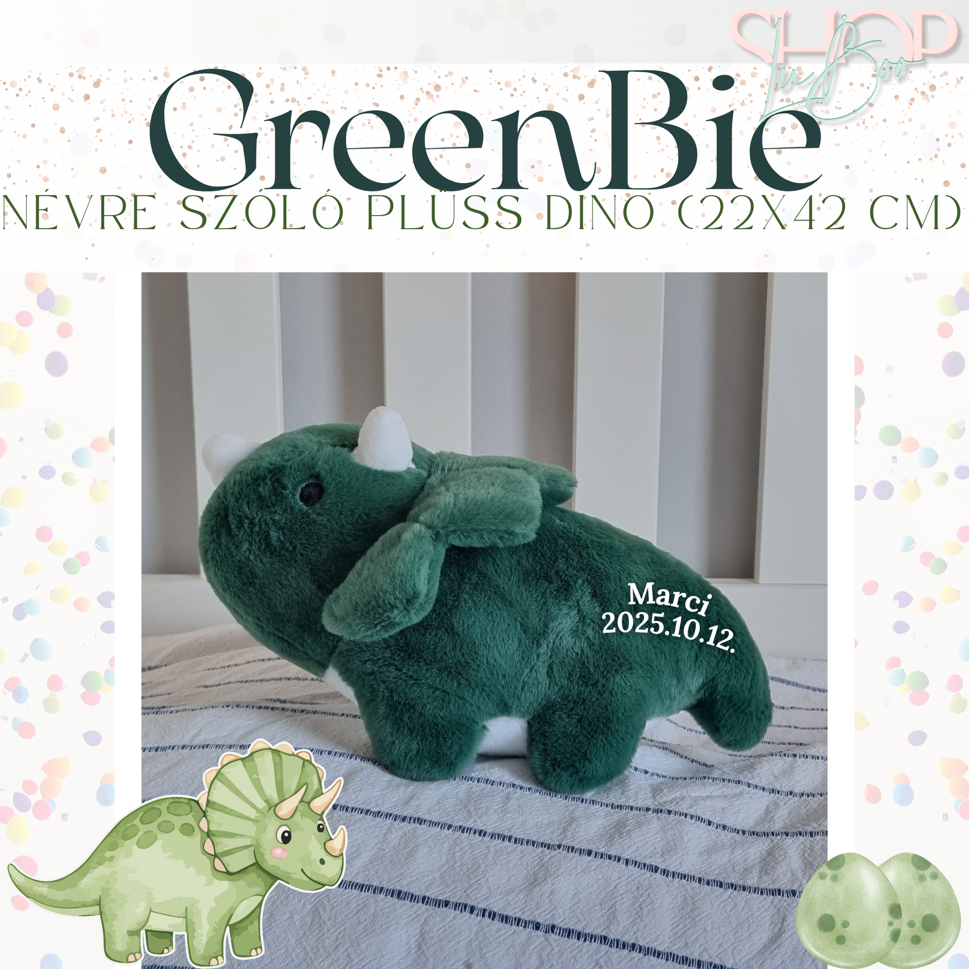 GreenBie - Egyedi, névre szóló plüss dino (25 cm)