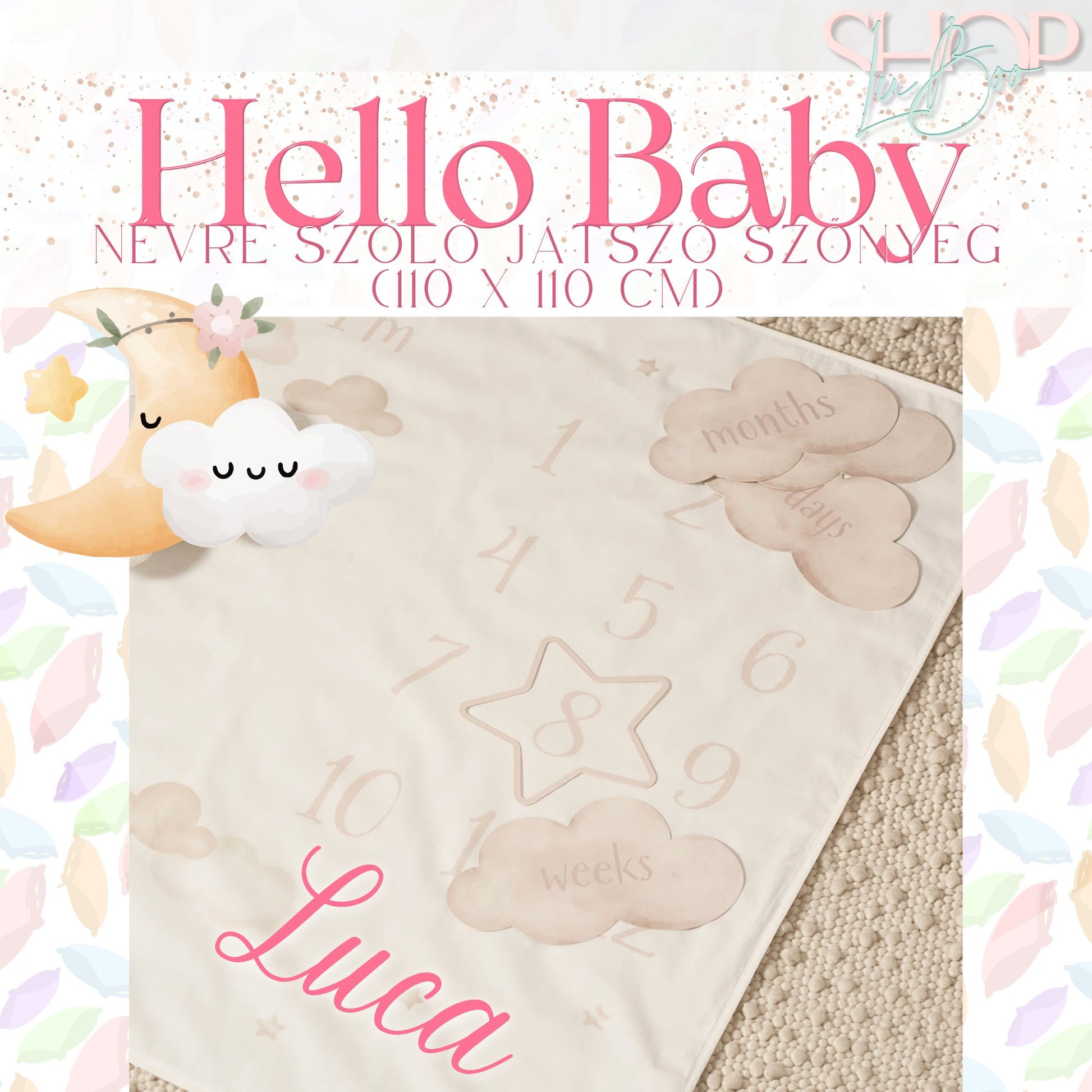 Hello Baby - Névre szóló mérföldkő játszószőnyeg (110x110 cm)