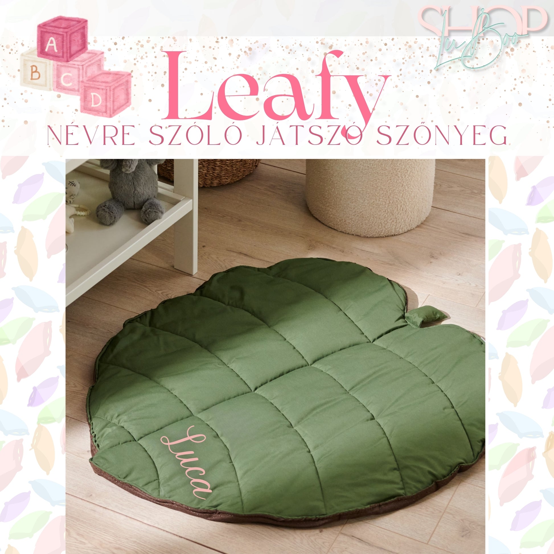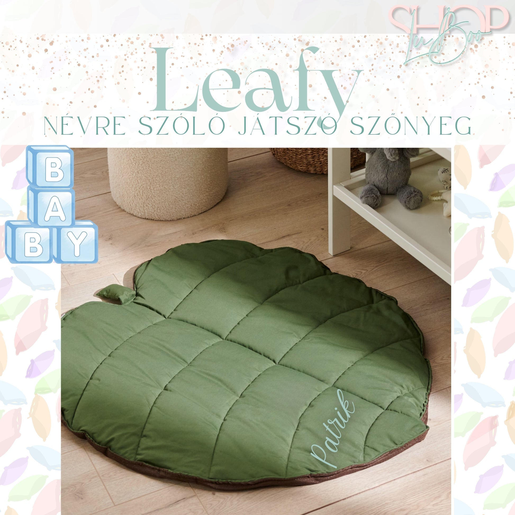 Igen, igen ez az egyedi és névre szóló zöld levél alakú babajátszó szőnyegünk, mely ideális választás a baba fejlesztéséhez és szórakoztatásához! Kényelmes és puha anyagának biztonságos környezetet biztosít a kisbabának játék közben. A szőnyeg egyik különlegessége, hogy személyre szabható: én vasalom fel rá a kisbaba nevét, így egyedi és emlékezetes ajándékot kap a család. Legyen szó játszásról vagy pihenésről, ez a szőnyeg minden szempontból tökéletes választás a babák számára. Tedd különlegessé a kisbaba játék idejét!