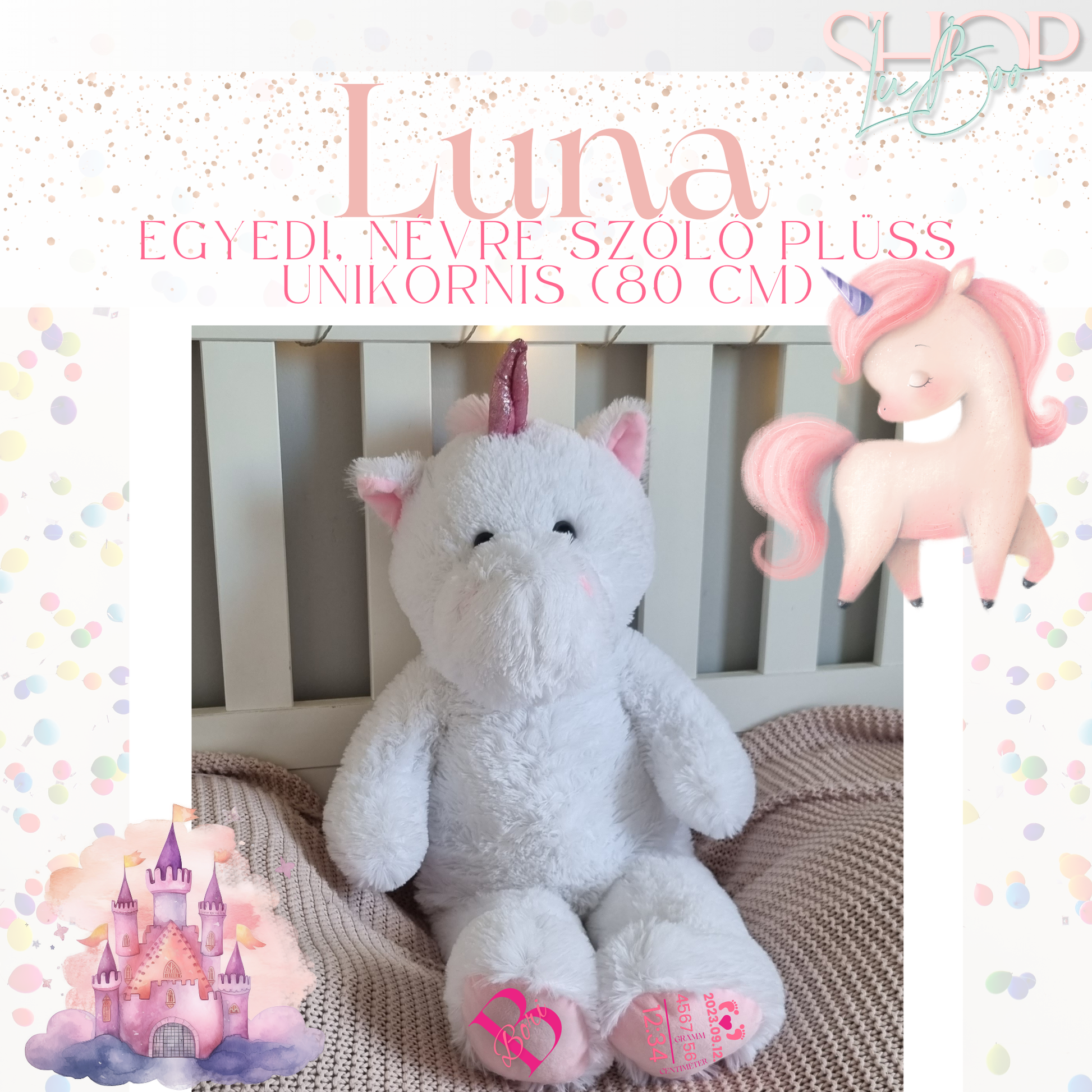 A Luna unikornis ölelni való puha, biztonságos a gyerekek számára, és igazi különlegessége miatt hamar a kicsik kedvencévé válik. Mérete miatt tökéletes játszótárs és alvótárs is, ami örök emlék marad.