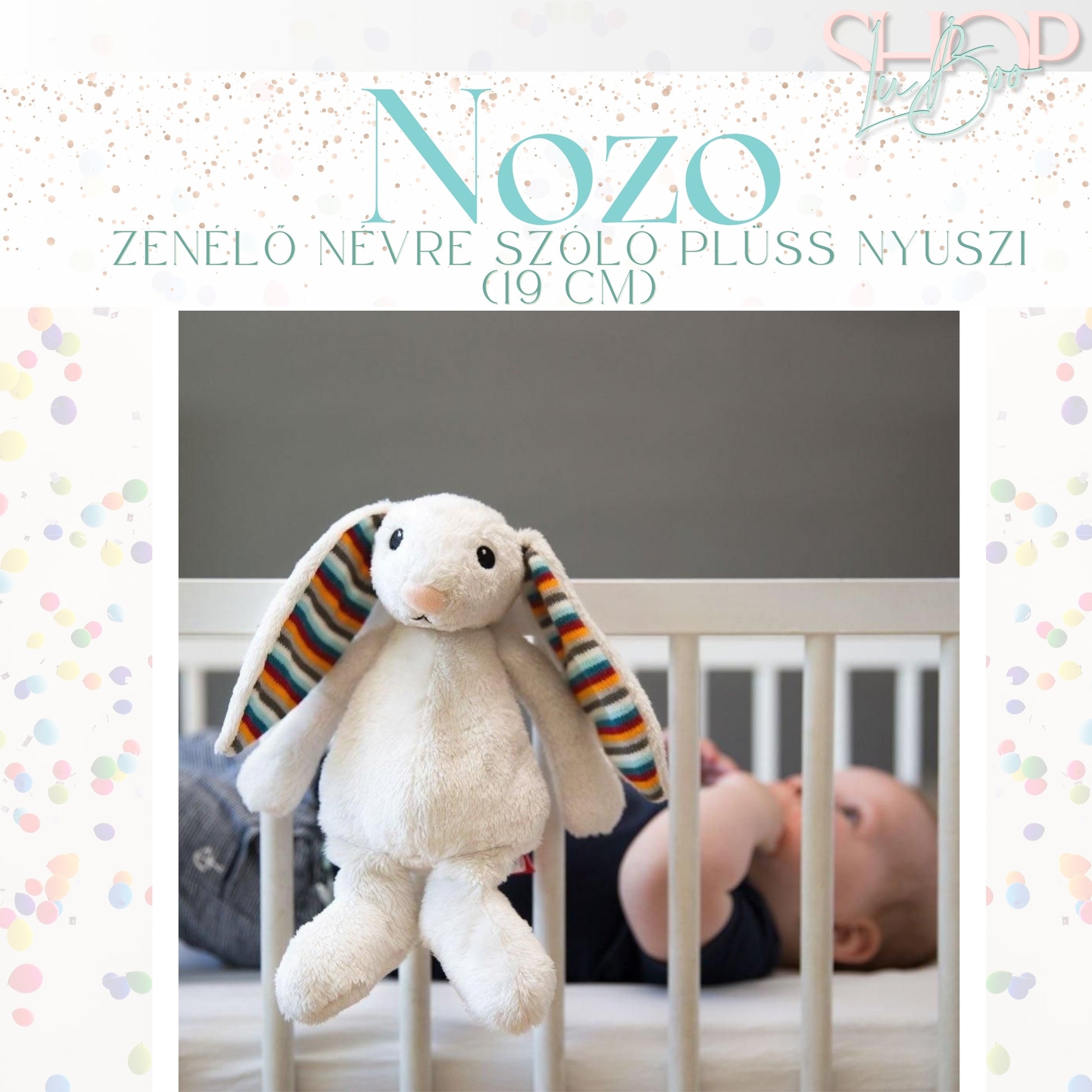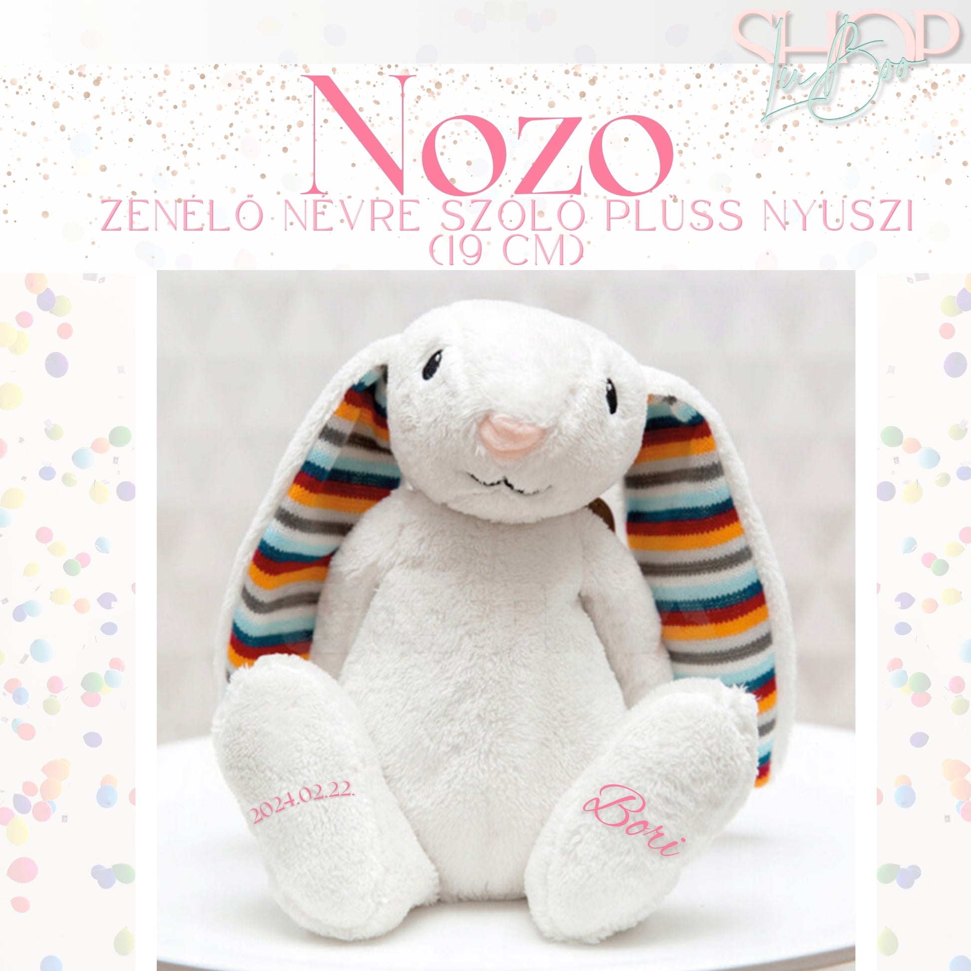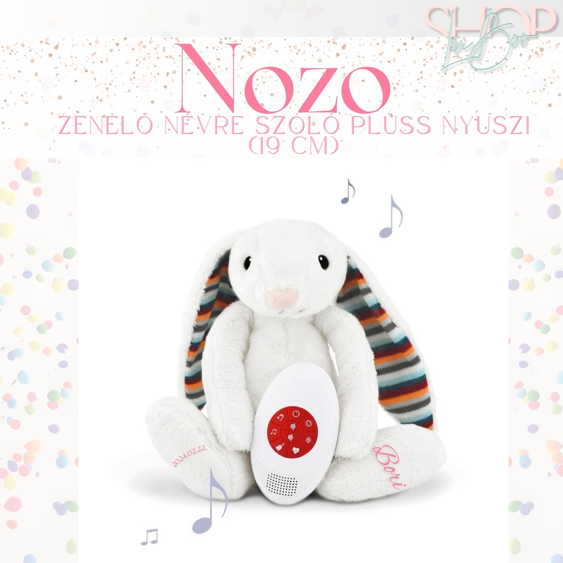 Nozo - Zenélő névre szóló plüss nyuszi (19 cm)