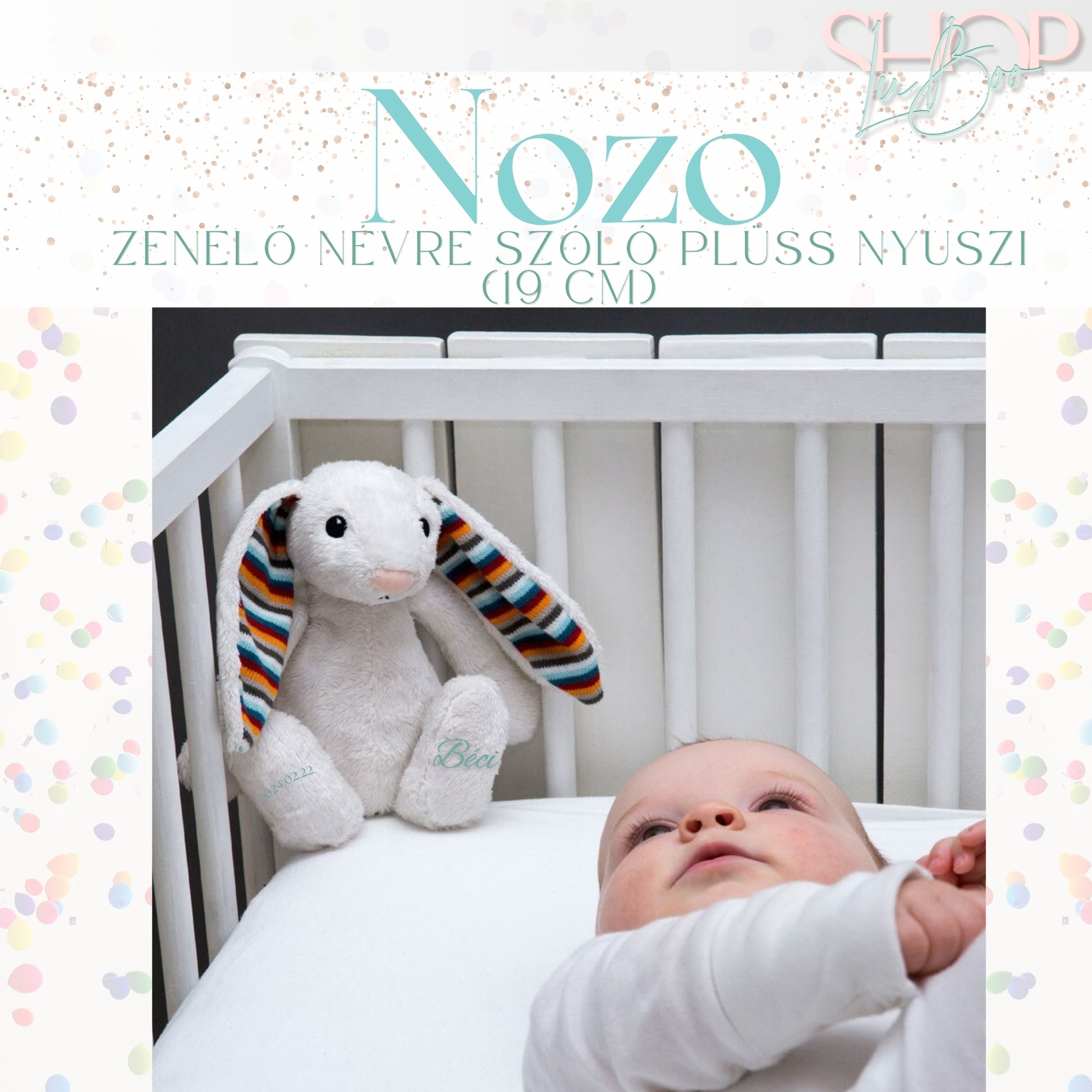 A puha, nyugtató plüssnyuszi tökéletes társ az újszülöttek számára, hiszen megnyugtatja őket, mint egy édesanya. mindent a plüssre én varázsolom fel az általad küldött kisbaba nevét, így még különlegesebbé téve ezt az aranyos kis barátot.