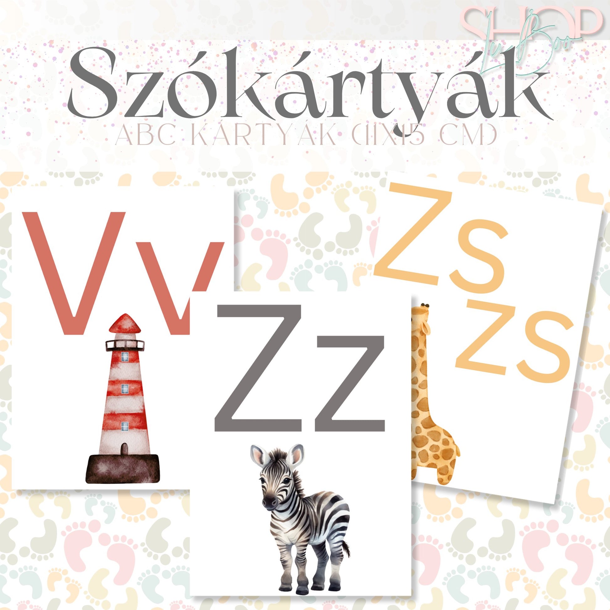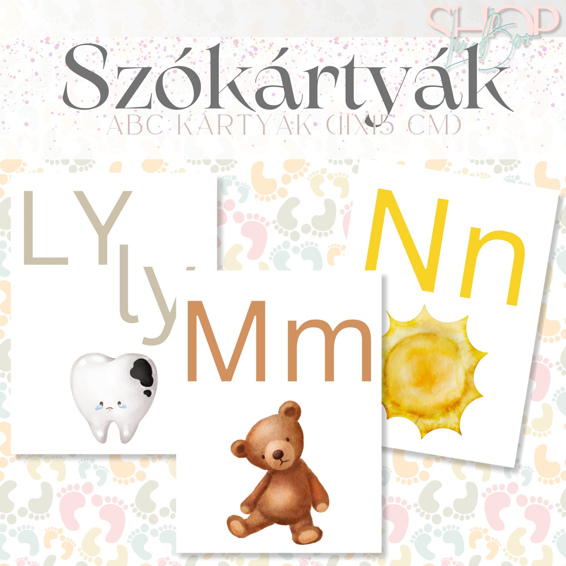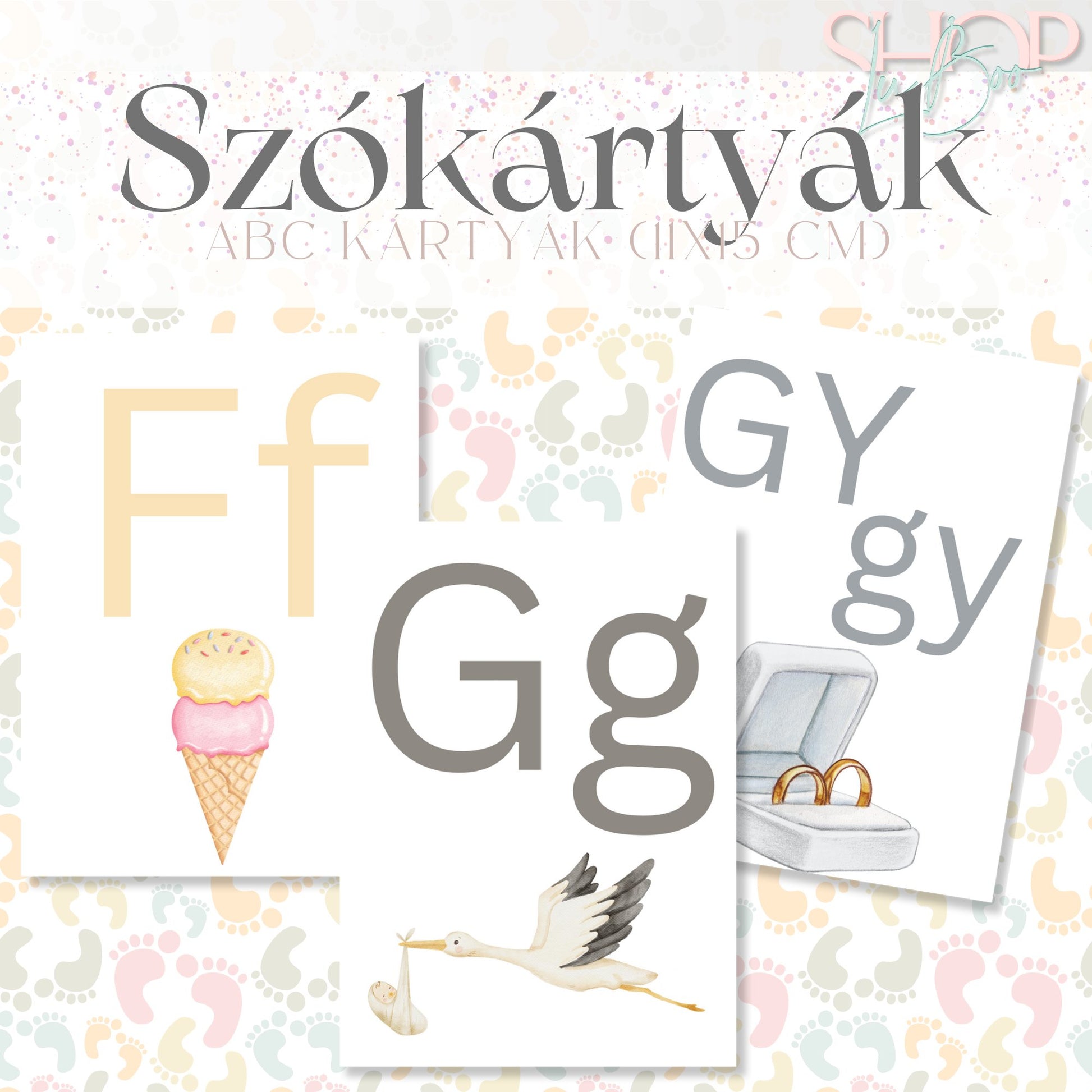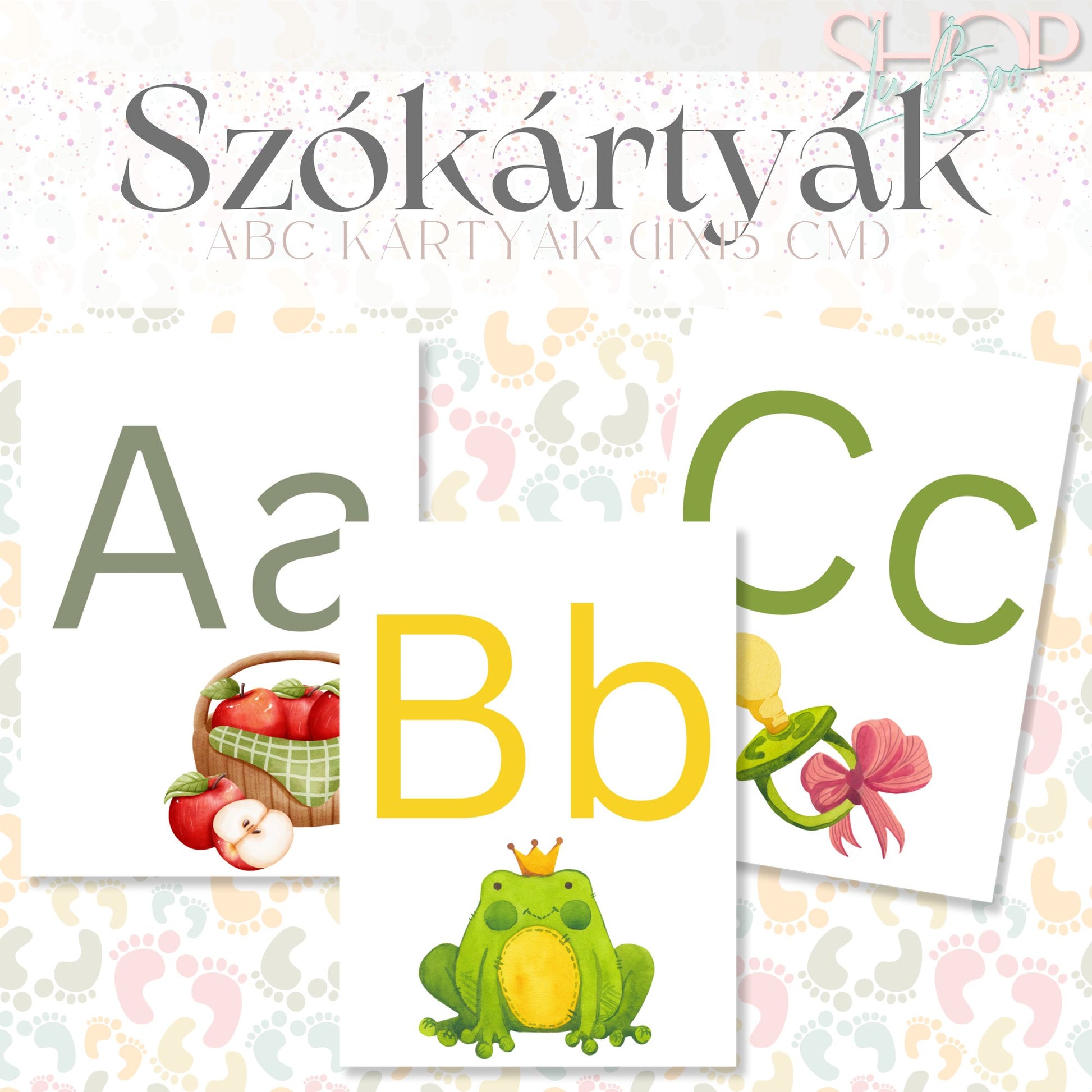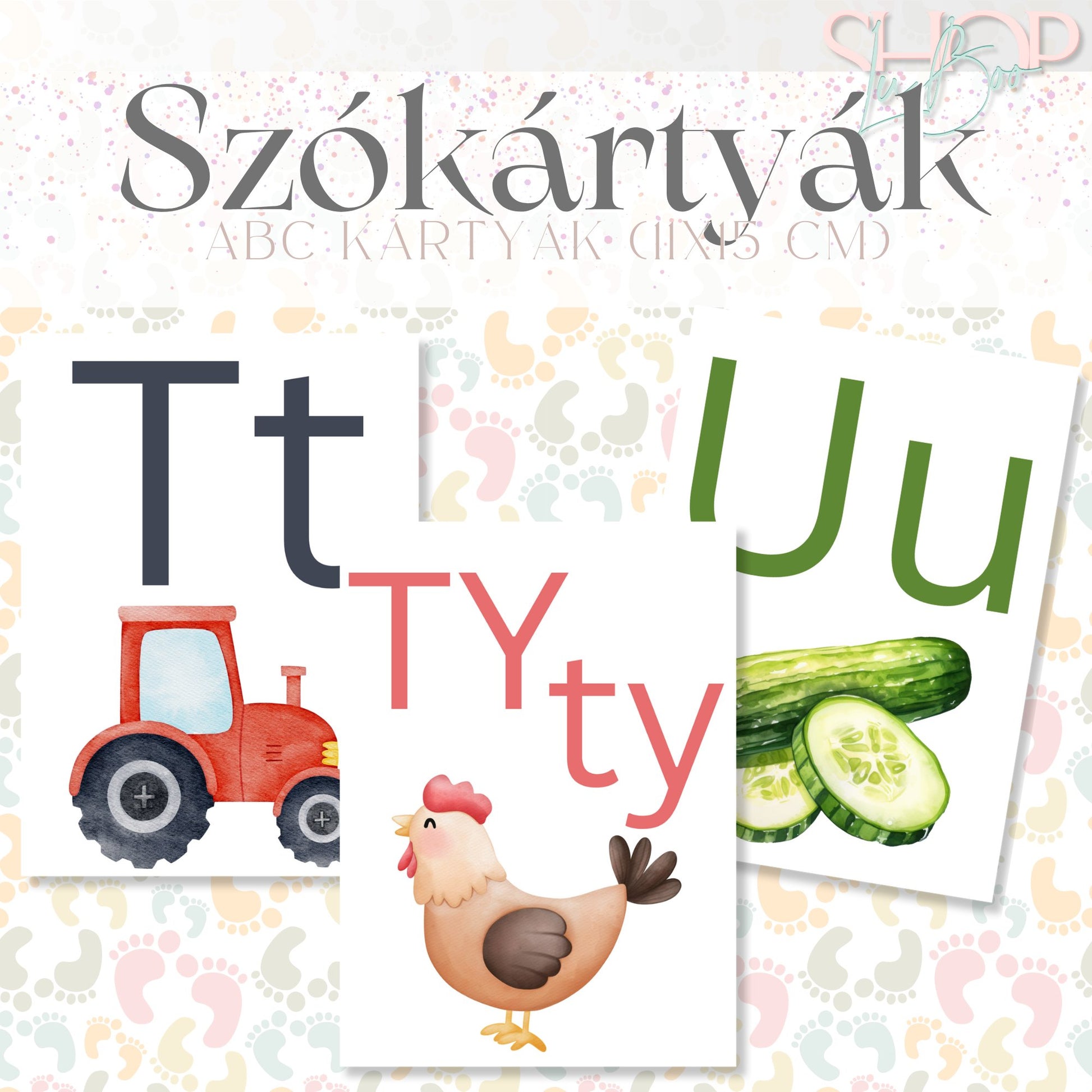 Minden kártya egy-egy magyar betűt ábrázol, és egy olyan képpel van díszítve, amely az adott betűvel kezdődik – így a gyerekek könnyen megjegyzik a betűket és azok hangjait.